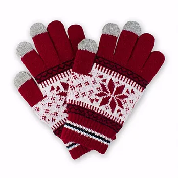 雪花針織觸控保暖手套紅色