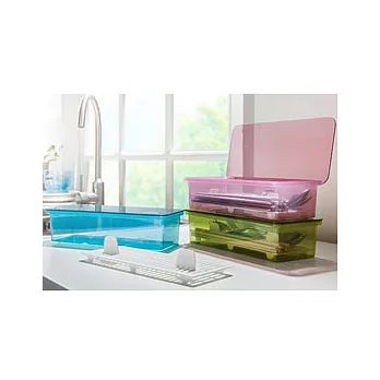 本品簡約防塵收納盒,整齊收納餐具,防塵防髒,底部簍空瀝水,能夠快速瀝乾餐具上殘留的水分,當然不易滋生細菌,灰塵飛蟲不易進入,健康衛生,半透明果凍色,內裡一目了然,還可收納麵條、鍋鏟、剪刀、開罐器...等,放在桌上抽屜裡都很整潔方便,讓桌面也整潔多了,尺寸大,容量夠,再多的餐具也能整齊收納。