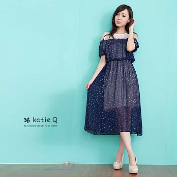 很多鄉民朋友超級推薦 【KatieQ】公主風露肩雪紡長洋裝(藍)-M-XLM藍