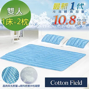棉花田【冰點】晶亮紗酷涼冷凝床墊組-酷藍色(1床+2枕)