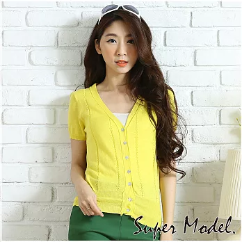 【名模衣櫃】直條造型短袖針織小外套-共9色FREE黃