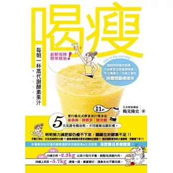 了解詳情Enzume Juice Dieting新鮮現榨.簡單速效!早上喝果汁、午晚正常吃,排毒燃脂樣樣來實行鶴見式酵素果汁瘦身法-養曲線.調體質.變美麗 方法對了,不用運動也能短時間見證奇蹟功效。由日本酵素營養學權威大師鶴見隆史教你如何運用酵素週期來改善飲食&生活型態,保證變成易瘦體質。請掌握以下鶴見式酵素果汁瘦身法的享瘦原則,讓你更加健康又美麗,由內而外散發明亮光采。 ●規則1 早晨就從一杯高代謝果汁開始! ●規則2 中餐晚餐正常吃,但仍須稍微留意酵素的攝取 ●規則3 為了使酵素容易發揮活性,不妨稍微調整生活習慣 ●規則4 想要有效地瘦身,不妨偶爾以半節食來重整體內環境 高代謝酵素果汁+半節食=效果加乘!! 想要快速且有效地展現瘦身成果,不妨與無須忍耐的「半節食」雙管齊下一同進行吧! 鶴見式的半節食法與完全不吃不喝的激進手段有所不同,是任何人都可以輕鬆挑戰的彈性方法,可分為「半日計劃」「全日計劃」「周末2日計劃」「3日計劃」4種,從不吃早餐的方式開始,到以蔬菜泥及粥湯來度過幾天的方式為止,請依照自己的身體狀況及場合,以輕鬆的心態來挑戰看看吧! 酵素存在於食物當中,肉眼無法辨別,所以「該怎麼吃」、「何時吃」、「吃什麼」這些食物的選擇便顯得格外重要,只要記住本書的所有觀念,簡單瘦身絕非難事!另外,本書收錄了高代謝酵素果汁食譜,跟著天天喝,不只體態變輕盈,還能助排毒、解便祕、消水腫等等,排除身體所有的疑難雜症,進而心情更愉快,一起來快樂瘦身吧! 本書特色 ◆5天見證奇蹟功效,不用運動也能狂瘦。 ◆本書教你如何運用酵素週期來改善飲食&生活型態,保證變成易瘦體質。 作者簡介 鶴見隆史(tsurumi takafumi) 1948年石川縣生,為鶴見診所院長。從金澤醫科大學畢業後,至濱松醫科大學實習,由於在西洋醫學的領域上無法得到滿足,因此也致力於中醫學、針灸、肌肉診斷法、飲食養生等相關領域的研究,並且著手研究以患者為出發點的「治病醫療」之東西方綜合醫學。於1990年代後期開始與當時活躍於美國休士頓的酵素營養學博士(馬馬度博士、傅熊博士)進行秘密交流,因此將所學的酵素營養學,並將酵素營養學的觀念傳入日本。從「生病的原因就在於浪費酵素及酵素不足的飲食生活」的觀念出發,進行鶴見式半節食法與酵素飲食的指導,並以酵素營養學的觀念來治療許多為各種疑難雜症所苦的患者。著有「酵素□病氣□□□□□体□□□□!」「病氣□□□□□酵素食□□□」等書籍。