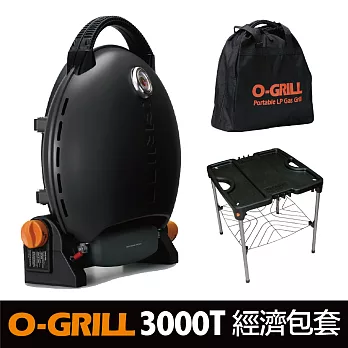 【經濟包套組】O-Grill 3000T 美式時尚可攜式瓦斯烤肉爐 搭配O-Dock Lite桌子+外袋個性黑