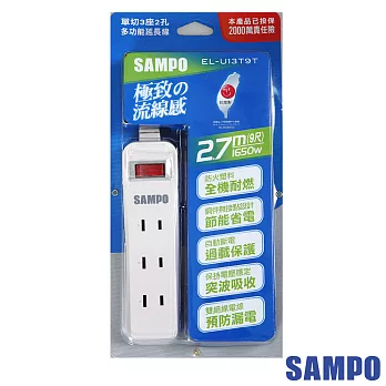 【SAMPO 】聲寶3座單切2孔多功能延長線2.7m(9尺-EL-U13T9T)