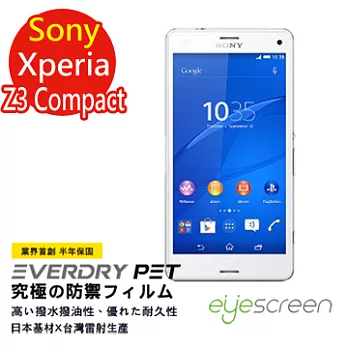 EyeScreen 索尼 Sony Xperia 保固半年 EverDry PET 防指紋 拒油拒水 螢幕保護貼 Sony Z3 Compact 這個我從博客來發現的商品實在優質!CP值也非常高!