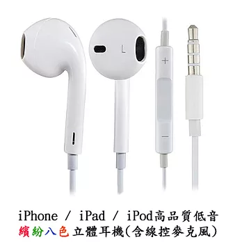 iPhone/iPod/iPad 高品質低音立體耳機(含線控麥克風)純潔白