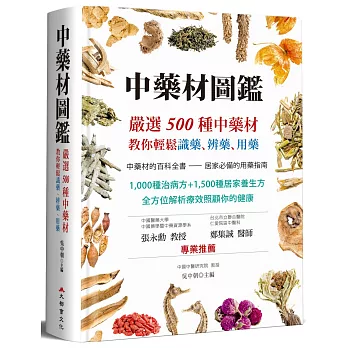 了解詳情中藥材的百科全書-居家必備的用藥指南 1,000種治病方+1,500種居家養生方 全方位解析療效照顧你的健康 識藥:詳細闡述每味中藥的別名、性味歸經、藥效等 辨藥:圖片清晰,以牽線標示區別中藥最明顯的局部特徵 用藥:中藥的用法用量有什麼講究?同一味中藥使用不同的炮製方法及炮製後藥效有何不同?平日在家如何使用中藥? 名人推薦 中國醫藥大學‧中國藥學暨中藥資源學系 張永勳 教授 台北市立聯合醫院 仁愛院區中醫科 鄭集誠 醫師 專業推薦 本書收錄最常用之500種中藥,使一般民眾不需具專業背景,即可輕鬆識藥、辨藥、用藥,以達養生保健之效。不僅可當作初學中藥者之入門書籍,更適合推廣於一般民眾對正確用藥之參考,值得廣為推薦。-中國醫藥大學.中國藥學暨中藥資源學系教授 張永勳 本書的出版,幾乎將《神農本草經》的缺憾都一一彌補,它用十分系統的分類法,把中藥分成補虛藥、解表藥、清熱藥等等二十一章節,幾乎應有盡有的把中醫治病的方法用藥以500味代表性中藥,用深入淺出的方式,娓娓道出,讓人淺顯易懂。-北市立聯合醫院仁愛院區中醫科主治醫師 鄭集誠