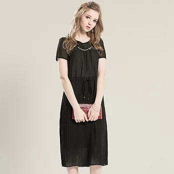 【模兒空間AMOR SPACE】S5125 高雅品味蕾絲雪紡長洋裝(3色)XL黑