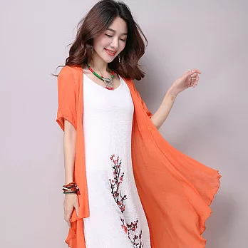 【A.Cheter 】手感染色圖騰棉麻長洋裝+罩衫兩件組 042605M橘