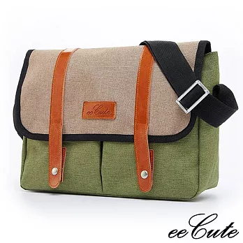 eeCute英倫學院風雙色斜側背包EEEL001-GR(質感綠)